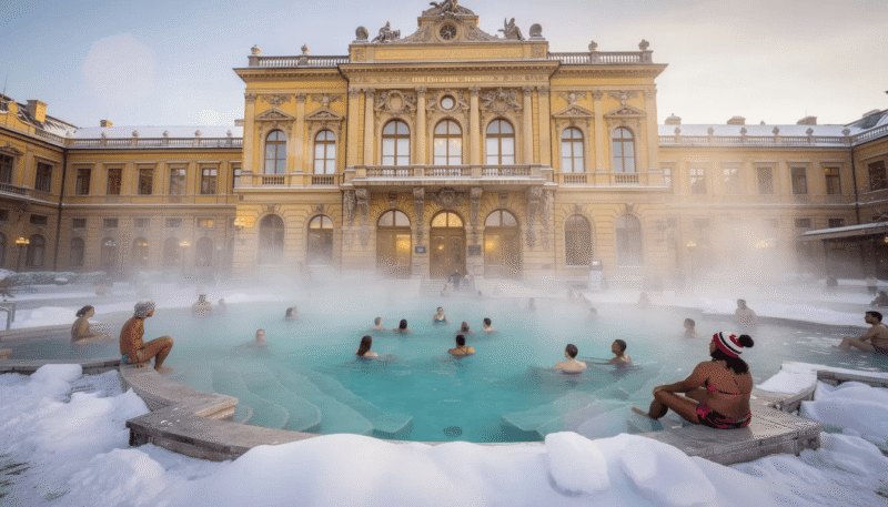 No visit to Budapest is complete without experiencing the thermal baths that have defined this city since Roman Empire times. Széchenyi Baths, housed in a grand yellow neo-baroque building in Városliget (City Park), is the most iconic—and perhaps the most memorable winter experience you’ll have anywhere in Europe.